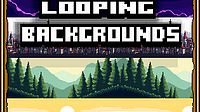 Ten seamless looping pixel art backgrounds, ready to scroll behind 2D games. Each scene comes as a static PNG and an animated GIF preview. Five are 192×64, five are 192×128. Scenes include city suns...